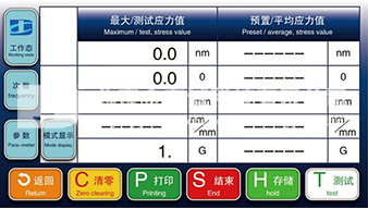 ③預置模式:可(kě)設“預置目标值”不(bù)測試件(jiàn)具體(tǐ)應力值,超預值變色報(bào)警。适于大(>dà)量生(shēng)産、出口類測試。多(duō)模式解決主要(yào)不(bù)同類型的(de)檢測要(yào)求,重點保證了(le)檢項✔,又(yòu)加快(kuài)了(le)檢測速度。
